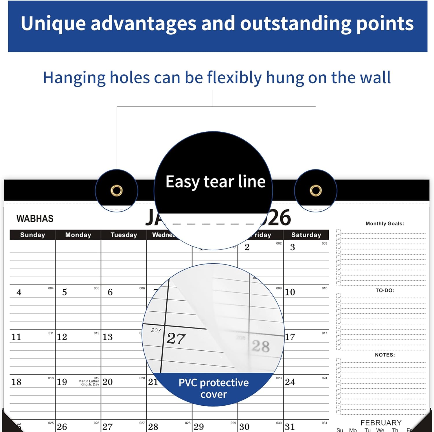 - ✨Calendars Design:2026 Desk Calendar flexible to use,easy to tear off the tangent and 2 hanging holes,you can easily tear off and move to the next page.Tear off the page every month or keep it.If you don’t want to the large desk calendar 2026 is placed flat on the desk,there are two golden hanging holes for you to flexibly choose to hang on the wall.