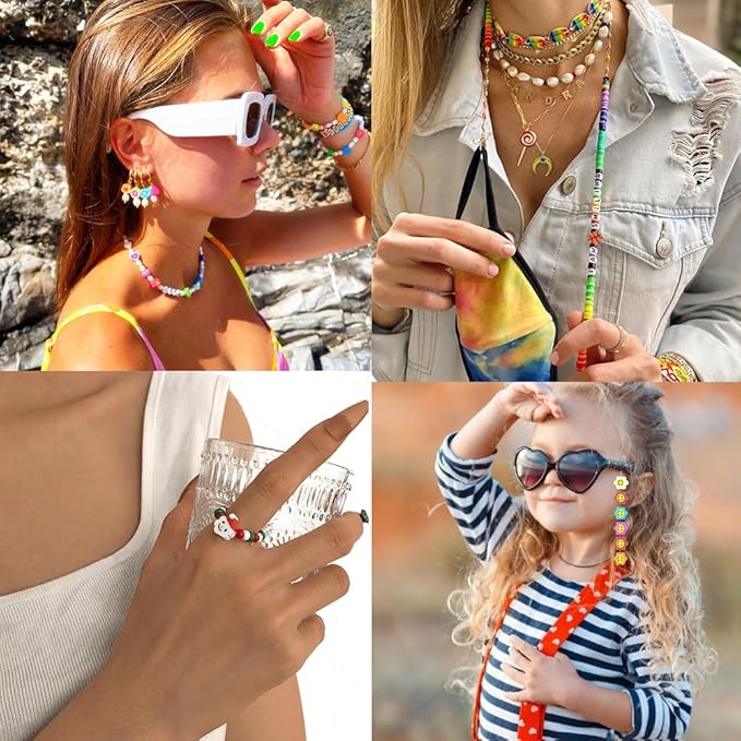 - Wide Range of Applications: Perfect for Beading, Jewelry Making, bracelet earring necklace making supplies, phone charm, phone lanyard wrist, pendants, waist beads kit, hairpin or hair braids for kids, fashionable shoes decor and party decoration. Smile face beads adhered to hairpin would be a perfect hair decoration.