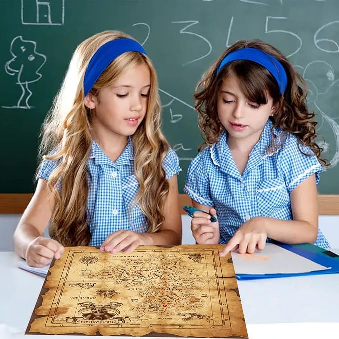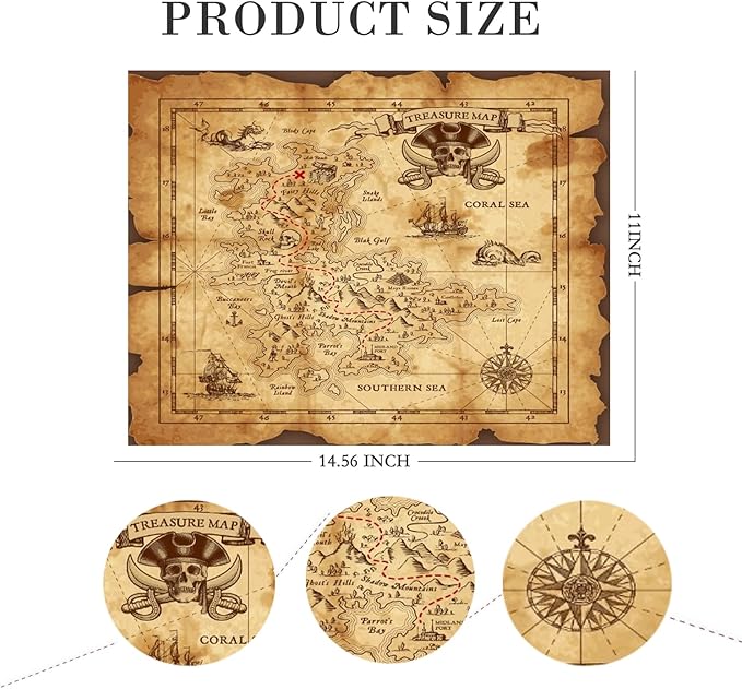 - ☀PREMIUM QUALITY MATERIAL - The portable telescope and pocket compass is classically designed with high quality aluminum-alloy plating gold while the hand-held part is covered with premium leather, the treasure map is made polyester fabric, durable, 37 x 28 cm/ 14.56x 11 inch size.
