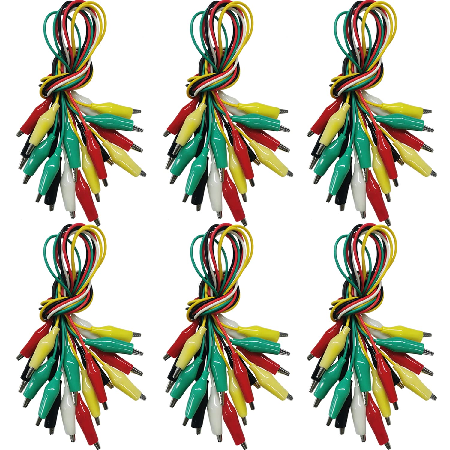 - 【Package Included】:You will get 60pcs electrical alligator clips with 5 colors. The total length is about 55cm/21.7inch, and the alligator clip terminal is 33mm/1.3inch, NOT 28mm/1.1inch, or 24mm/0.94inch. the test leads with crocodile clips can be used temporarily for circuit connection, probes, jumper wires testing, and similar to the Crocodile month, and thus named as Crocodile Clip (Electronic Spring Clip).