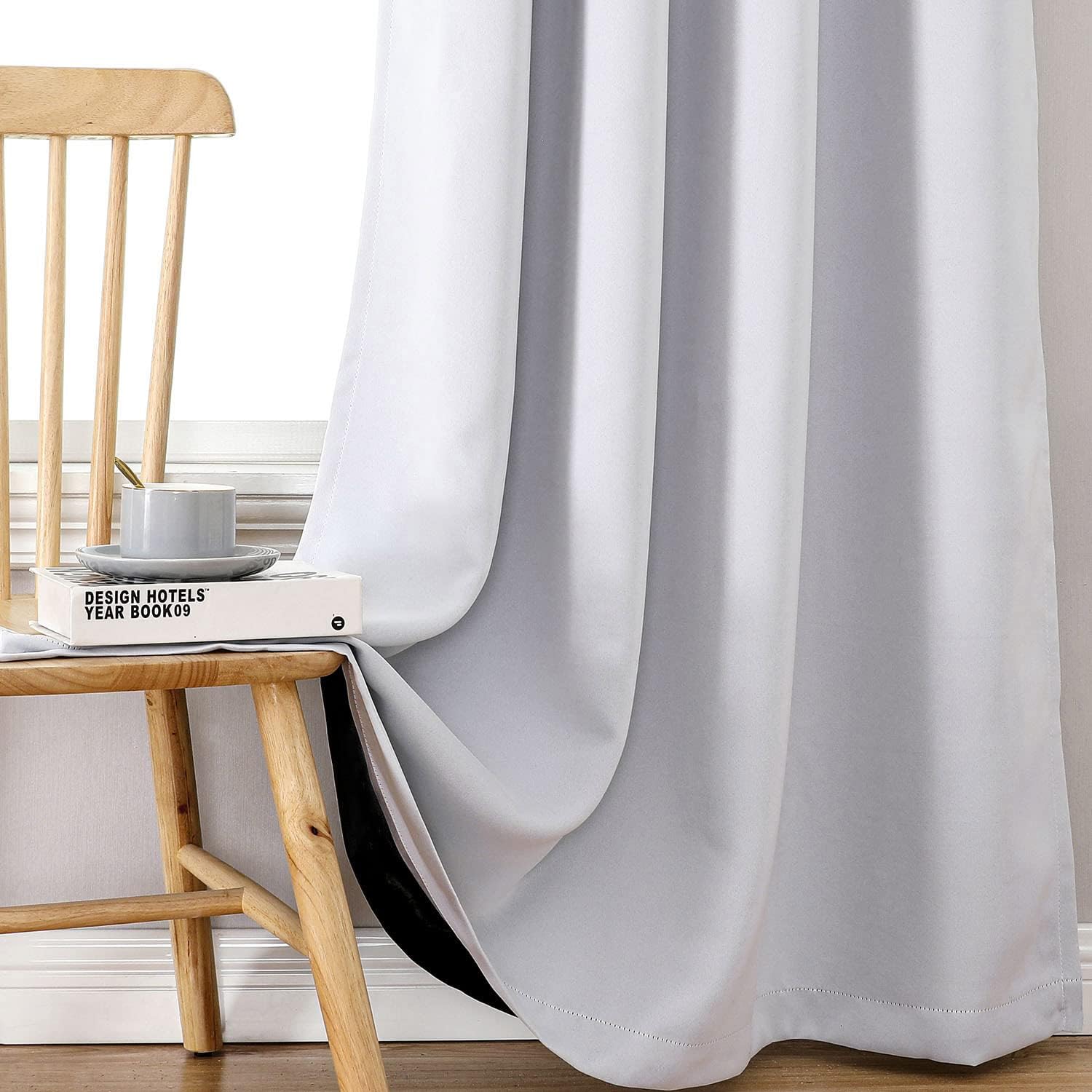 ChrisDowa 100% Blackout Curtains for Bedroom with Black Liner, 2 Thick Layers Total Blackout Thermal Insulated Grommet Window Curtains 2 Panels Set (Greyish White, 52 x 54 Inch)