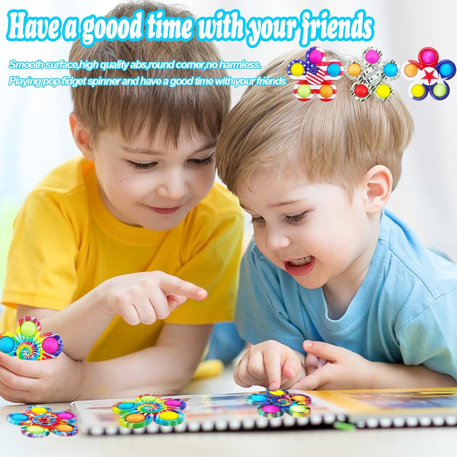- 【2 in 1 Unique Design Fidget Spinners】2 in 1 pop fidget toys pack of 30. It is a pop bubble toys and Also a fidget spinner.When Pressing the bubble on any side will make a loud "POP" sound,