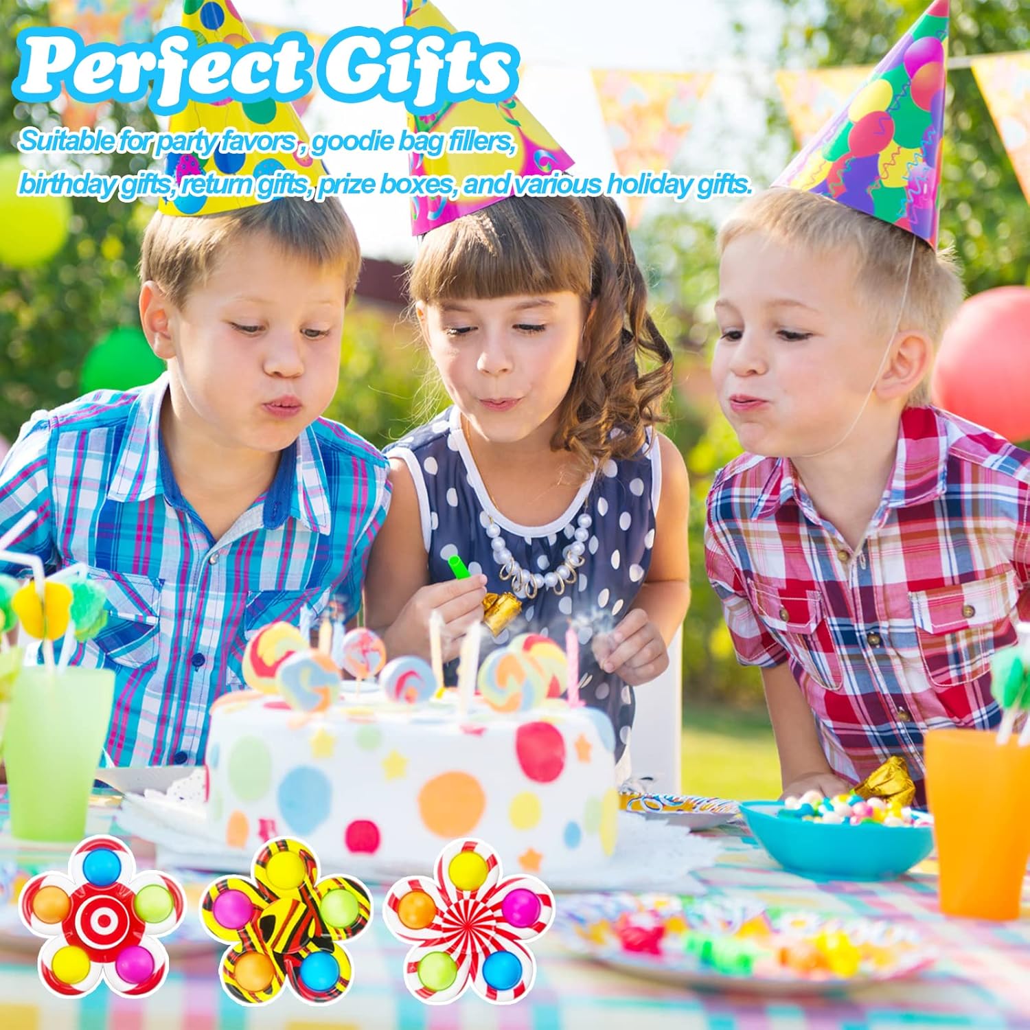 - 【Amazing Party Favors】This fidget it spinners are perfect gift for Halloween Christmas Valentines day party favors, kids birthday party return gifts, party bag fillers, Christmas gifts, Easter Basket Stuffers. the Fidget spinners are also suitable for interesting birthday party gifts, classroom awards, carnivals, prize boxes, stocking stuffer and candy bag stuffing.