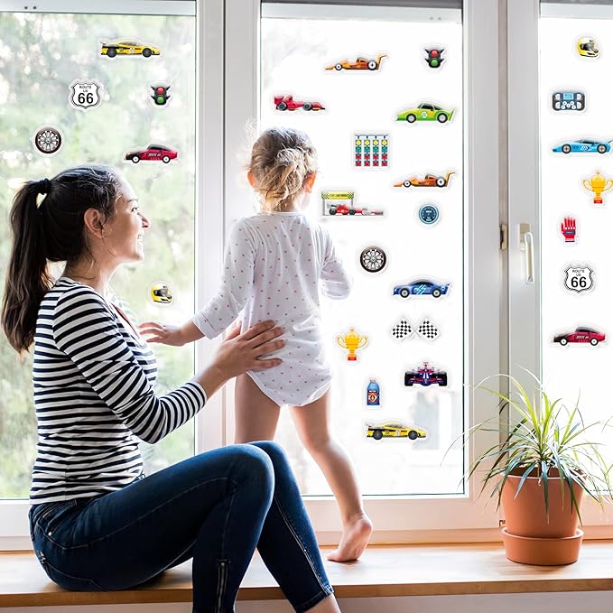 - Wide range of uses: racing car thick gel clings is very suitable for pasting on car windows, refrigerators, walls, classrooms, daycares, bedrooms, game rooms, etc.! These gel clings can also decorate your birthday parties, family gatherings, anniversaries Or racing car parties, etc.