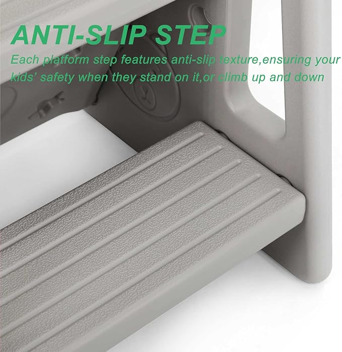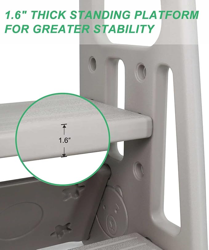 - 【Tool-Free Assembly】No tools needed!The toddler counter stool is easy to assemble!Two steps and large openings makes it easy for children to climb in and out by themselves,which develops their confidence and independence.This kitchen and bathroom step ladder is a must-have for busy parents.Parents no longer need to hug their children to a height which beyond their reach or worry about the safety of their kids,which saves their energies,frees up their hands so they can get more work done