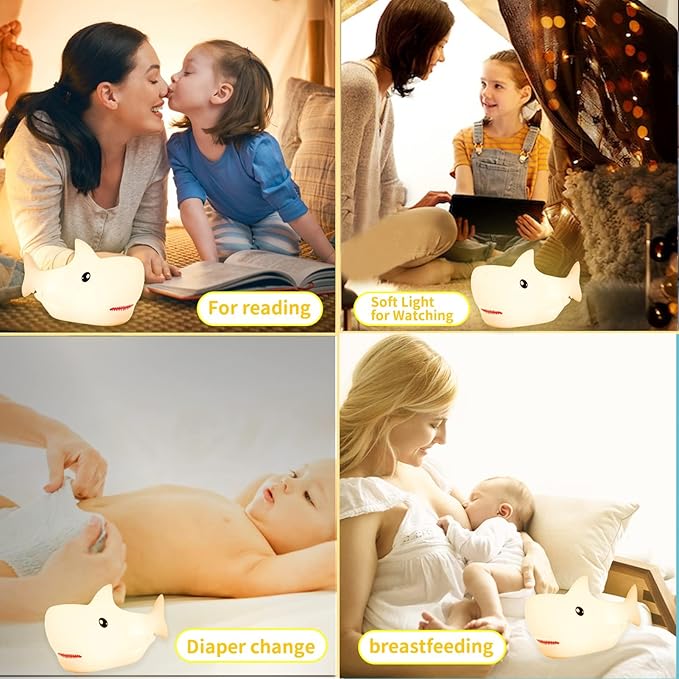 LOVERUIS Shark Night Light for Children, 7 Color Changing LED Portable Touch Baby Lamp, USB Rechargeable Silicone Animal Night Light for Children, Kindergarten, Toddlers (Shark)
