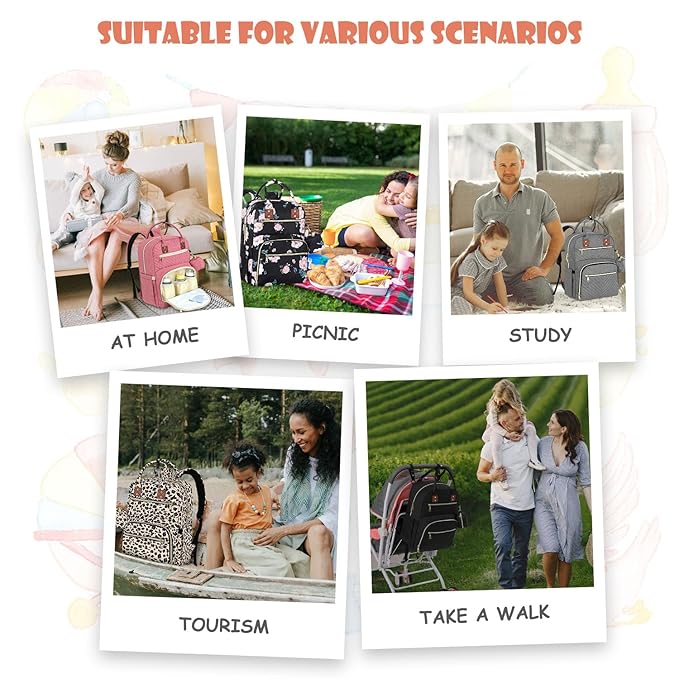 - 【Convenient & Well-Designed】Revel in the convenience of this spacious diaper bag, complete with 2 stroller straps and a pacifier case, along with a foldable diaper changing pad as special gifts. Its multitude of pockets neatly organize diapers, wipes, formula, toys, and more. Perfect for indoor, outdoor, shopping, office, travel, and even doubles as a hospital bag!