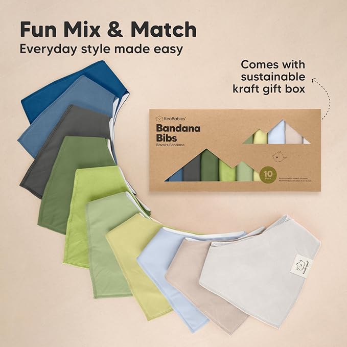 - 10-Pack Exclusively Designed Baby Bandana Bibs - Crafted with exclusive nifty prints on 100% organic cotton, double layered with plushy soft water resistant fleece, and put together with modernistic overlock stitching. The final product: functional baby bibs for girls and boys that instantly stands out. Every piece of KeaBabies Bandana Drool bib is handcrafted with quality materials and an extra dose of love. Its unisex colors are suitable for baby boys and girls.