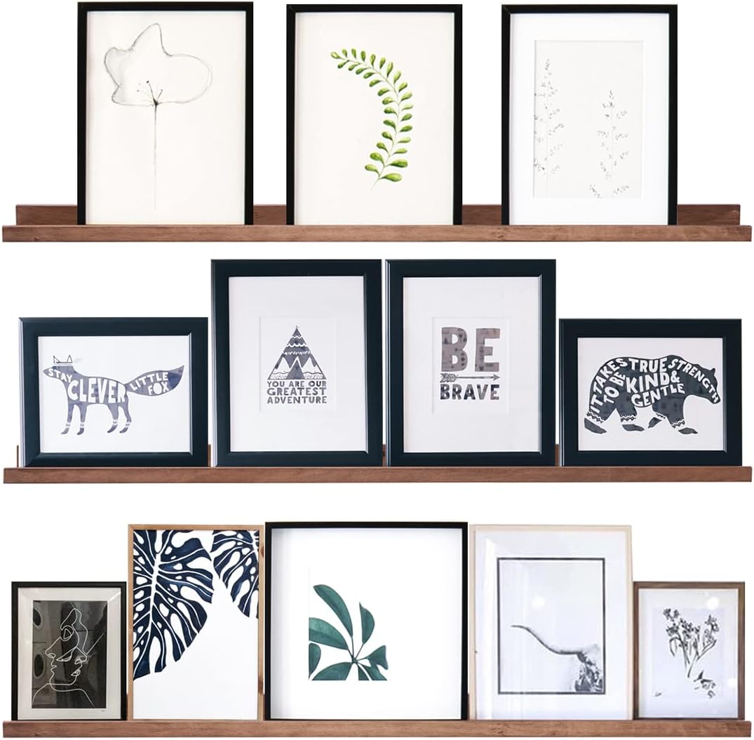 36 Inch Picture Ledge Shelf Rustic Wall Mount Light Walnut Long Narrow Picture Shelves Storage for Books Toys Music Albums Green Plants-Photo Ledge Shelf Set of 3 Mounting Hardware Include