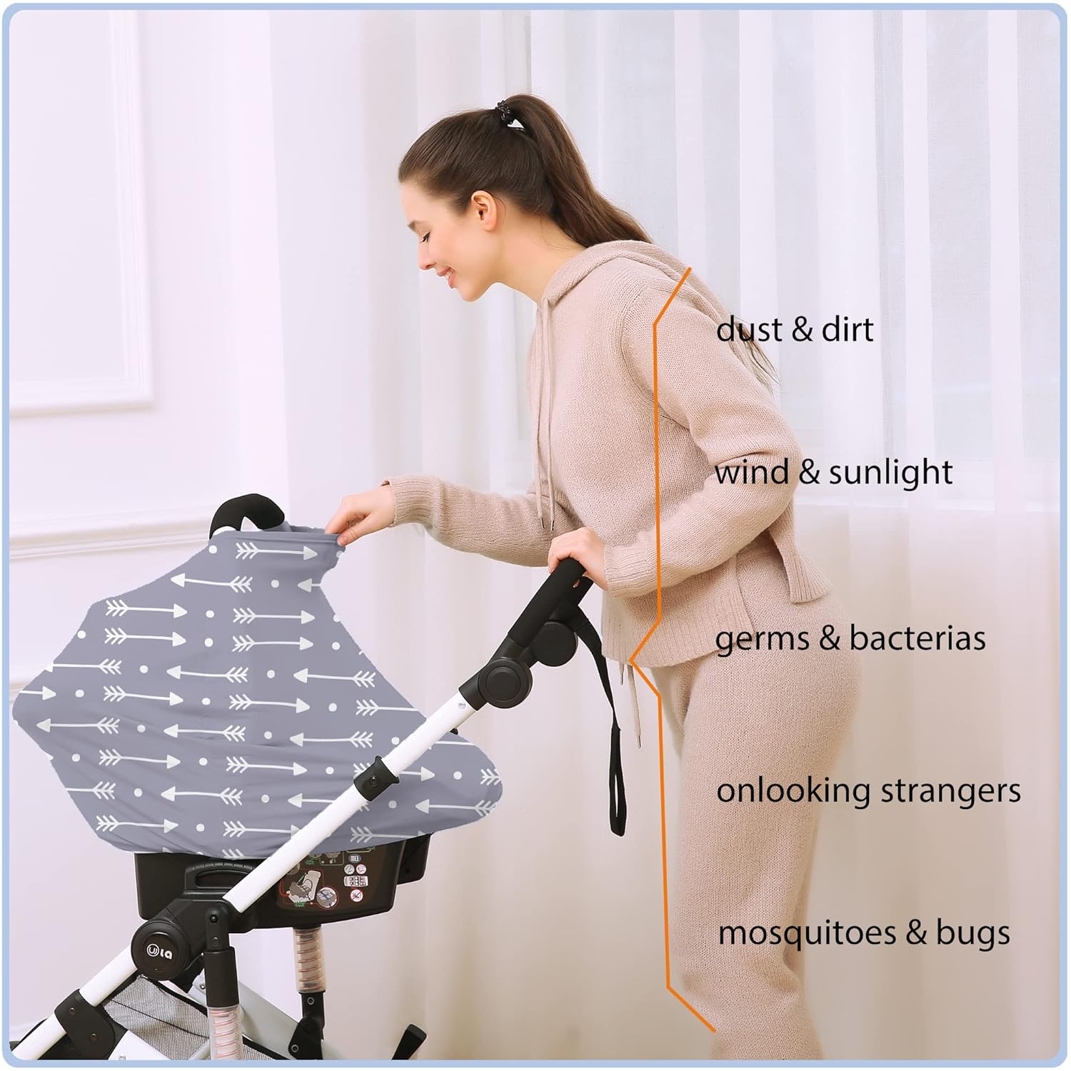 Car Seat Covers for Babies - Multi- use Nursing Carseat Canopy, Breastfeeding Covers, Baby Shower Gifts for Boys and Girls (dot Arrows)