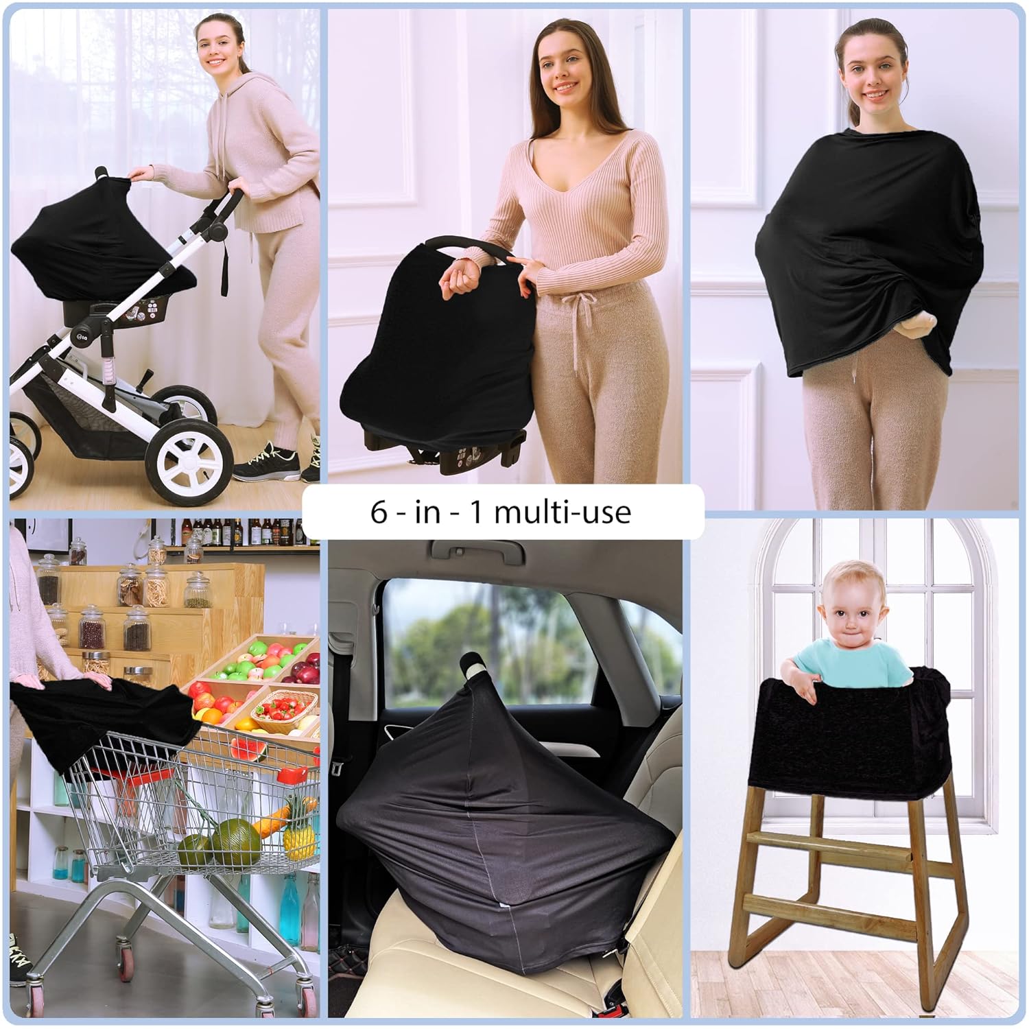 Car Seat Covers for Babies - Multi- use Nursing Carseat Canopy, Breastfeeding Covers, Baby Shower Gifts for Boys and Girls (Pure Black)