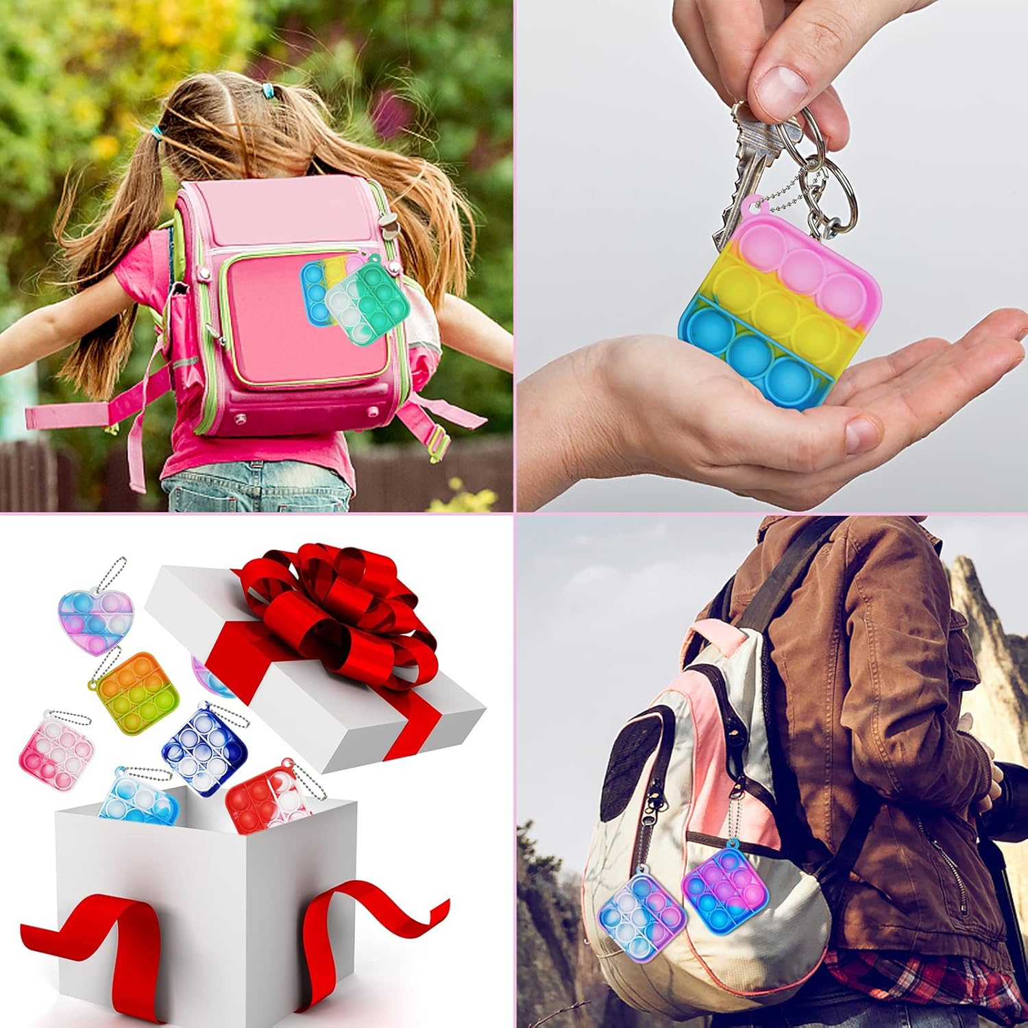30 Pcs Mini Pop Bubble Fidget Toys, Silicone Keychain Small Pop Bulk for Party Favors, Classroom Prizes, Reliever Hand Toy Goodie Bag Stuffers Halloween Christmas Birthday Gifts for Kids Students