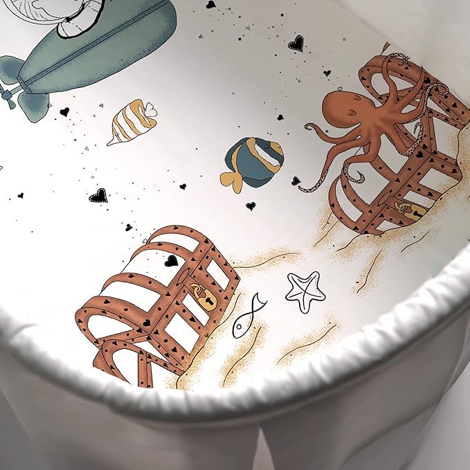 JumpOff Jo - Hypoallergenic Fitted Bassinet Sheet for Baby Boys & Girls - Rectangular, Hourglass & Oval Crib Compatible, Soft, Breathable, Machine Washable - Octopus Treasure
