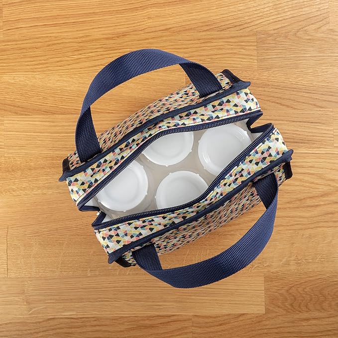 Dr. Brown's Fold & Freeze Bottle Tote, Travel Baby Bottle Insulated Cooler Bag, Store Up to 6 Baby Bottles, Geometric Multicolor, BPA Free