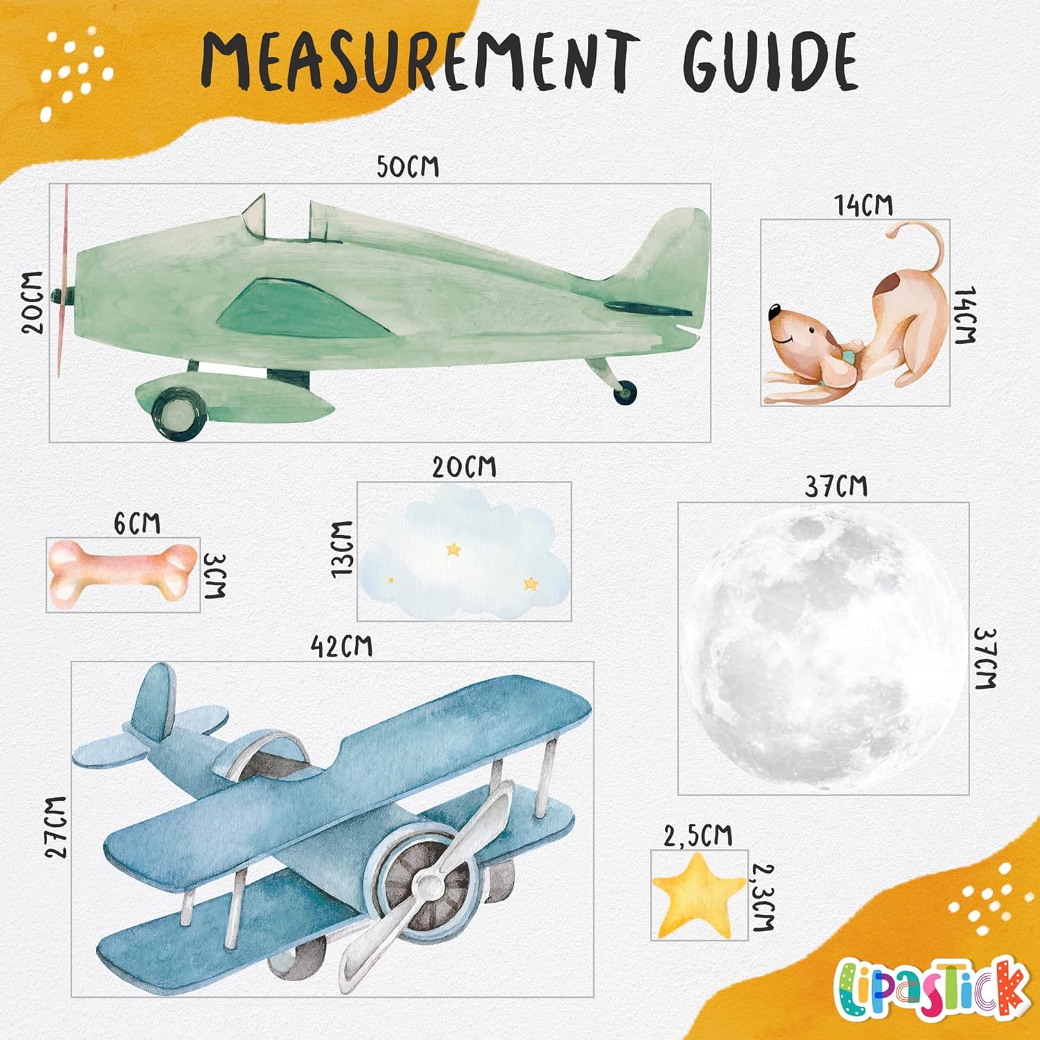 Airplane Wall Decals by Lipastick - 47-Piece Watercolor Vintage Plane Stickers for Kids, Boys Room, Baby Nursery, Toddler Bedroom Decor - Premium Vinyl Aircraft Art - L Size