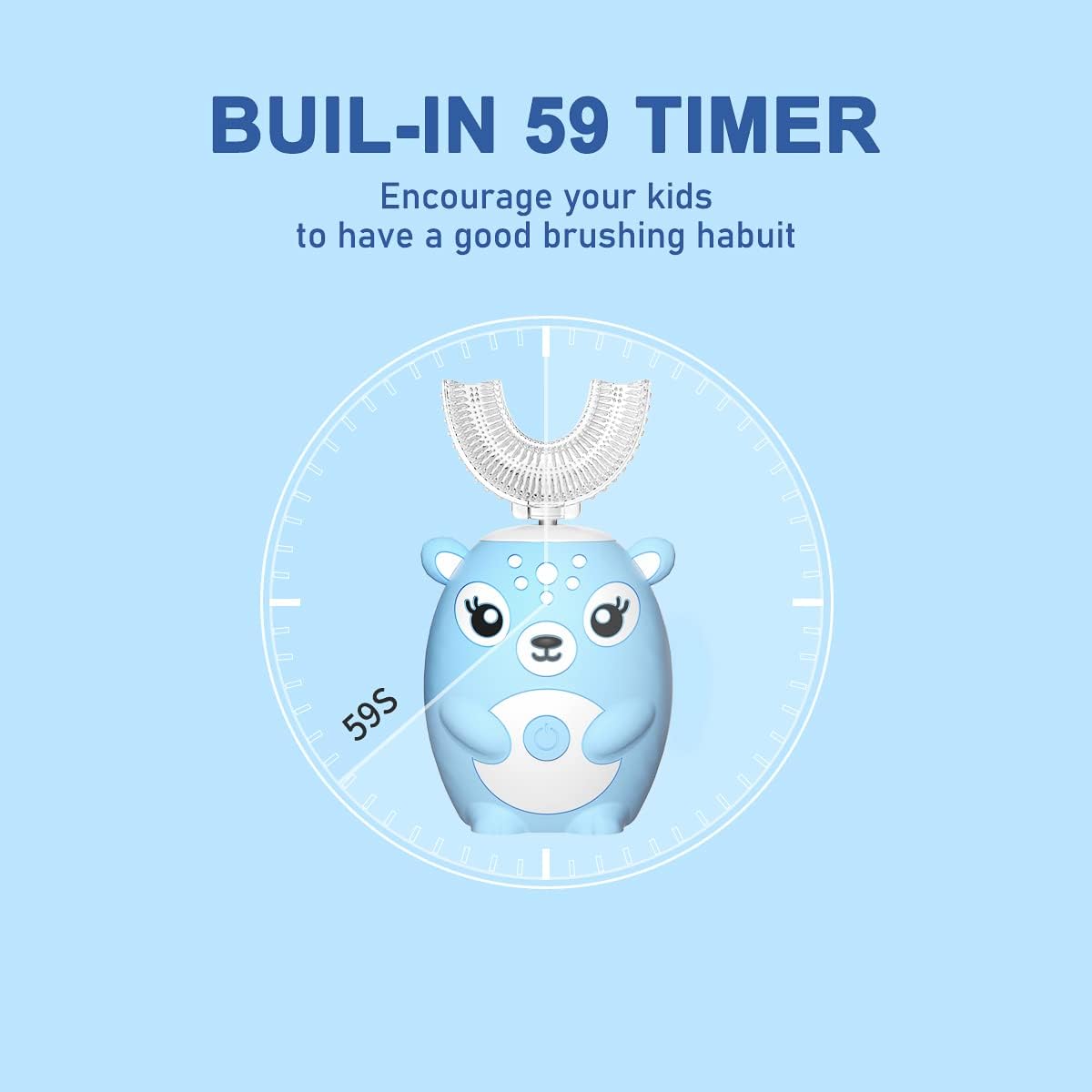 - WHAT YOU GET : Kids electric toothbrush body, 2 U-shape brush head, 2 soft brush heads, USB cable, Dustproof Gargle cup(toothbrush cover), User manual