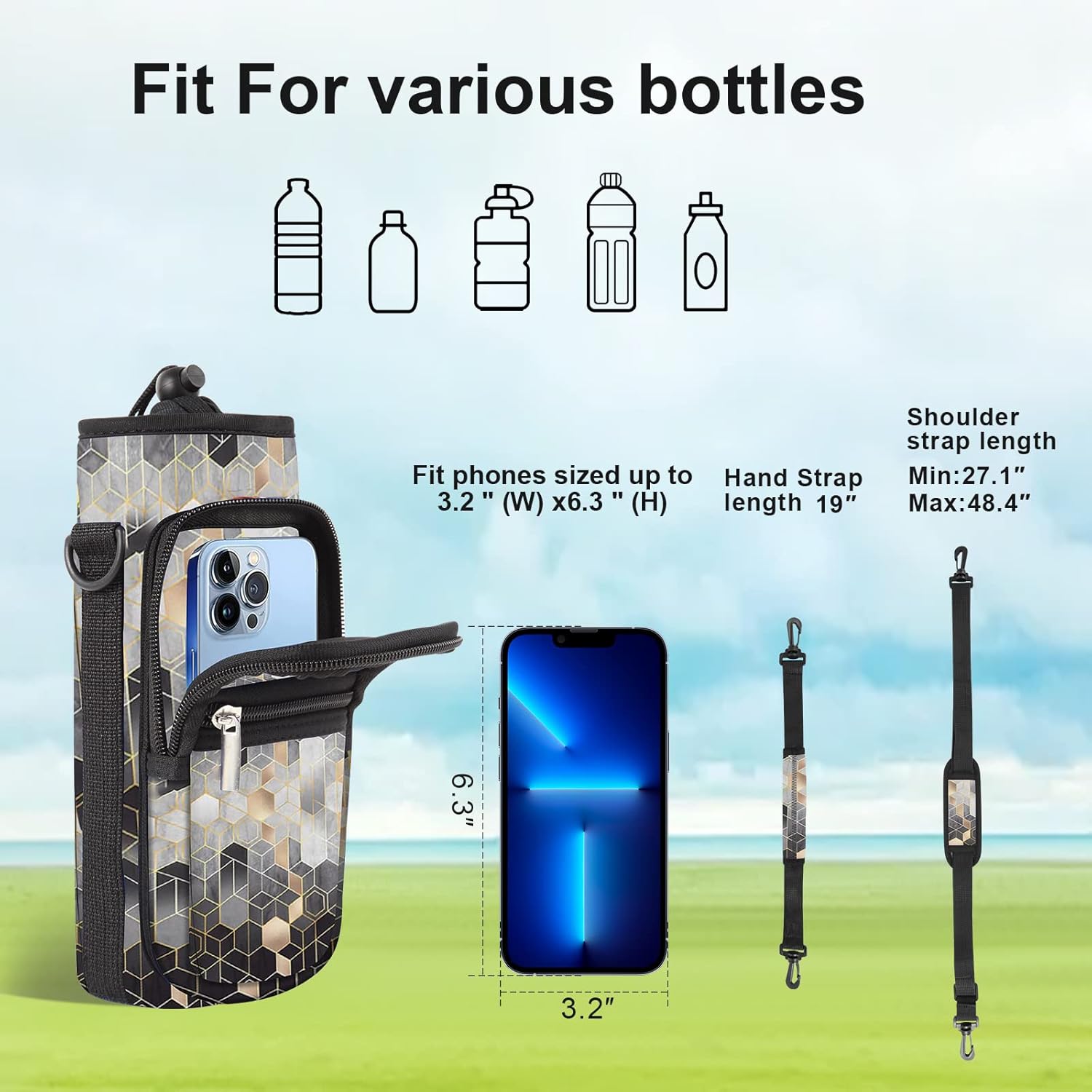 25/32/40/64oz Water Bottle Bag Holder Carrier-Insulated Crossbody Sling Case Sleeve with Strap & Pockets for Men Women Gym Cycling Travel Walking Hiking Camping