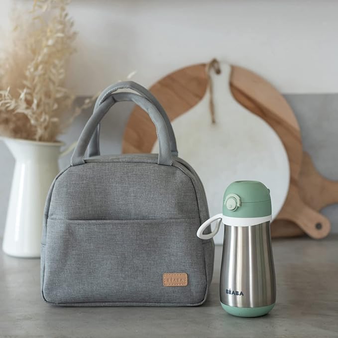 BEABA Kids Stainless Steel Insulated Water Bottle, Kids Water Bottle, Toddler Thermos with Spill Proof Spout and Close Top, Perfect for Travel, (Sage)