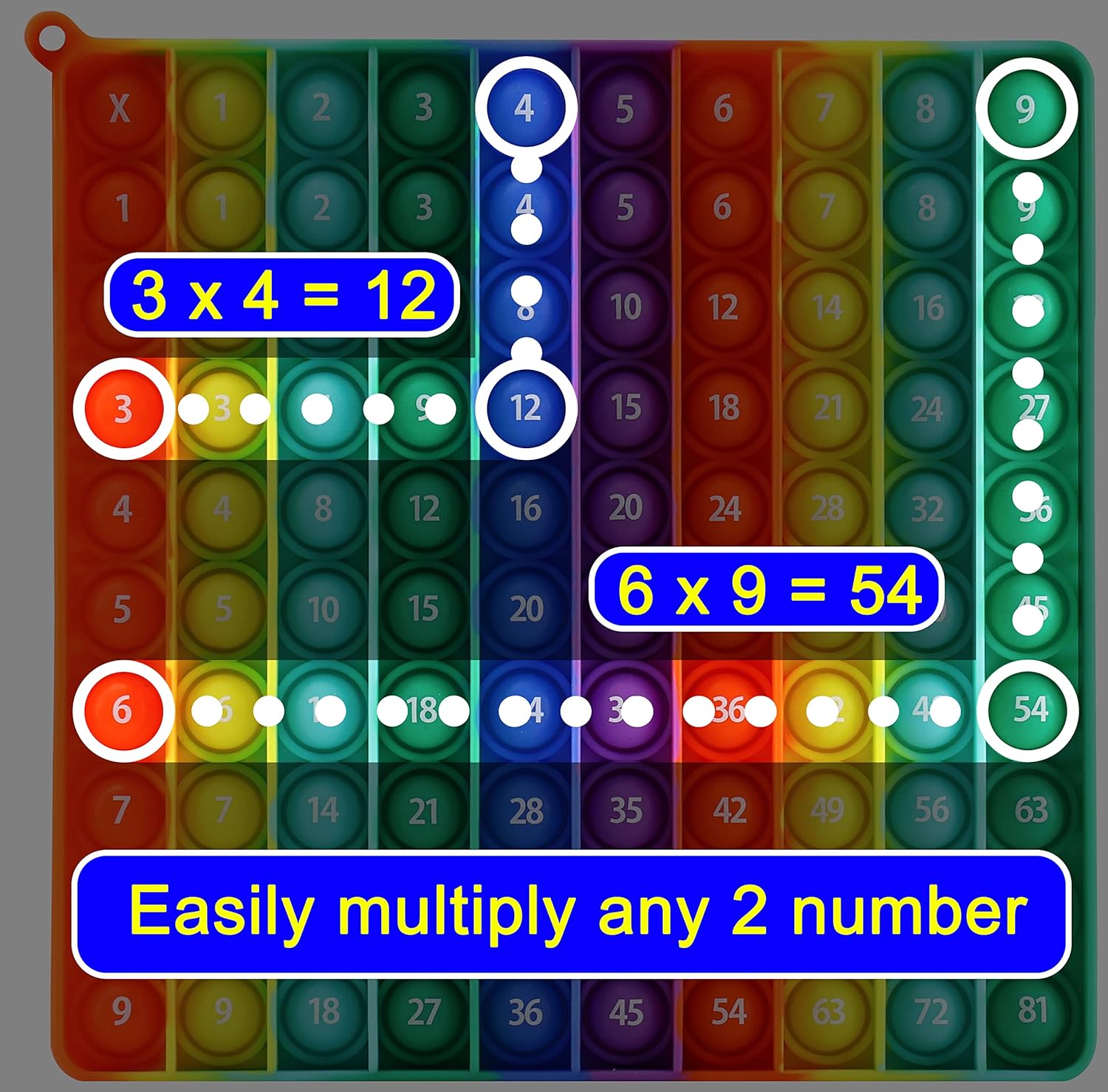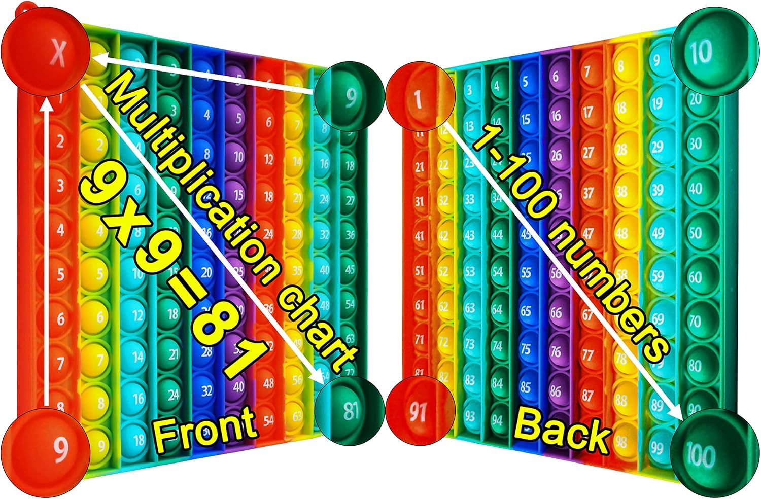 - [2022 New Design]: The multiplication table and the numbers 1-100 are printed in 100 bubbles, allowing children to learn numbers and multiplication formulas while playing, making learning more interesting, for teachers, the multiplication table is also a good teaching tool.