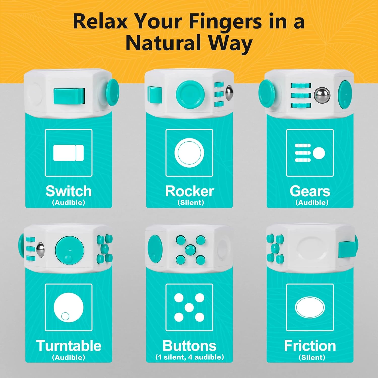 - Soothing and Relaxing: The cube fidget toy has switch, rocker, gears, turntable, buttons, friction buttons, supporting stress and anxiety relief, dexterity and hand-eye coordination.