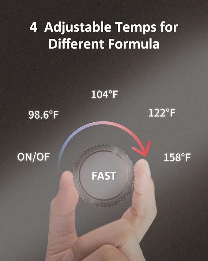 - ๐ฐ ๐ง๐ฒ๐บ๐ฝ๐ ๐๐ฑ๐ท๐๐๐๐ฎ๐ฏ๐น๐ฒ: 4 temps (98.6ยฐF; 104ยฐF; 122ยฐF; 158ยฐF) specially designed to accommodate with different formula and baby preference. The ideal formula feeding temp is body temp 98.6ยฐF, since itโs the same as fresh breast milk. You can also use it as drinking water dispenser at 104/122ยฐF set. Plus, the water temperature can get as high as 158ยฐF.