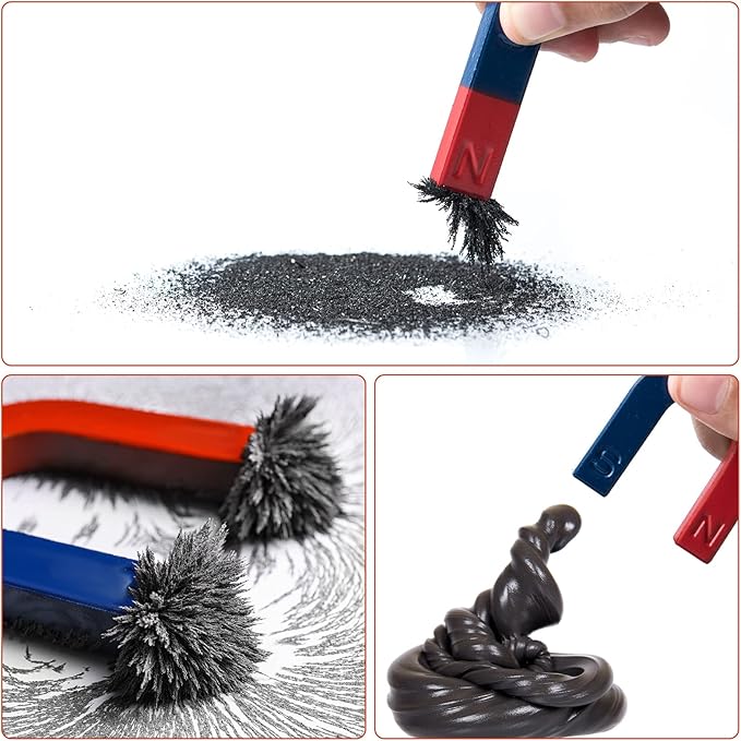 - ✈️【Industrial Grade Magnetic Iron Powder】1 X Storages jar containing 1 pound iron filings, with convenient shaker lid which ensures less mess, clean dry, pure and safe. With this great tool, a magnet(included in the kit) and a sheet of paper, kids get close-up look at magnetic lines and magnetic fields, including poles and attraction. Also, with the iron powder, they can make their coolest magnetic slime, an awesome science and sensory play activity for kids.