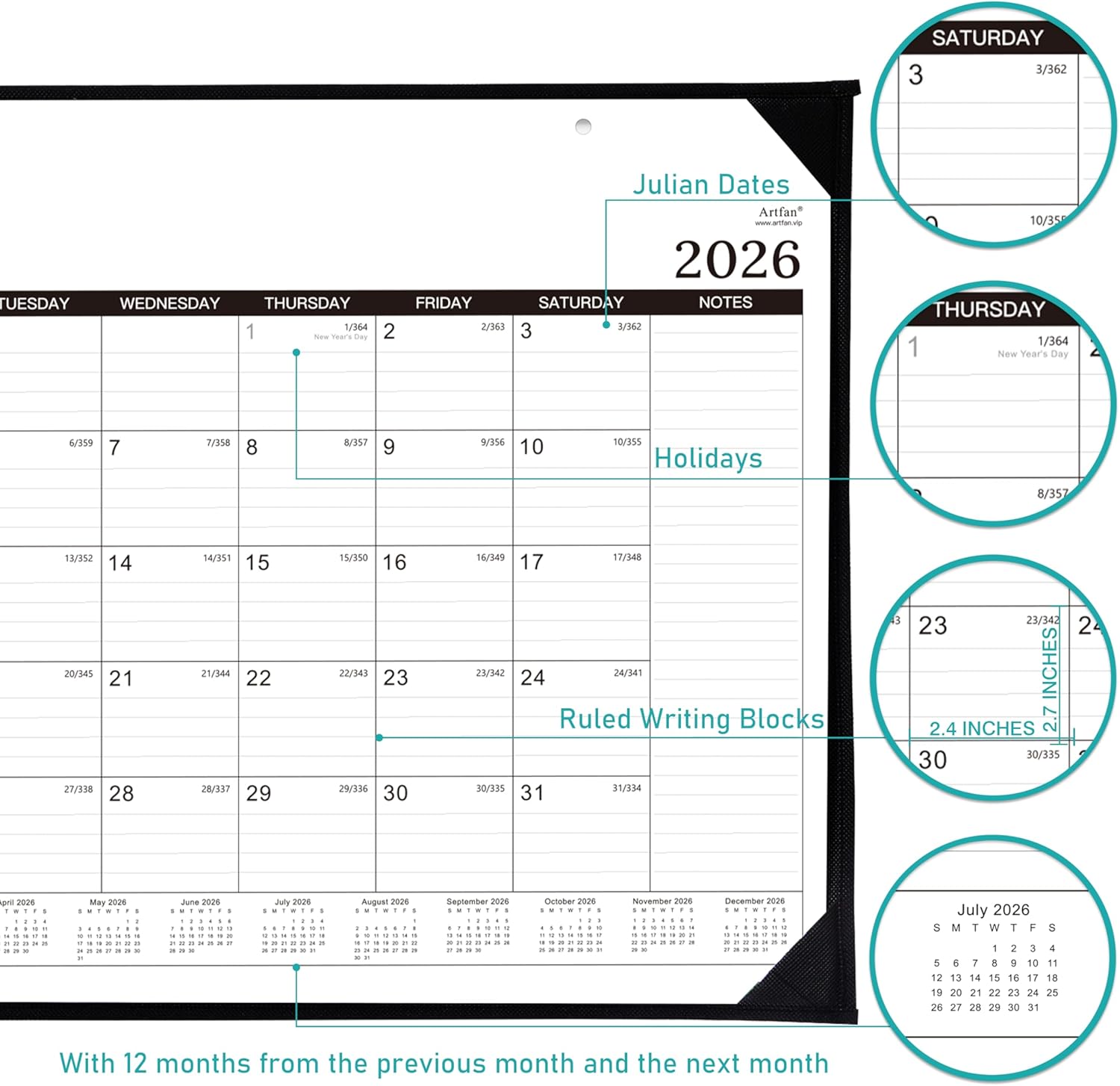- 📆 FUNCTIONAL DETAILS - Ink leakage resistance paper in this 2026 large desk calendar + Cut-lines for easy tearing off + 2 Hanging holes in this monthly desk calendar 2026 + 2 clear corner protectors + Bright white paper for clean writing space and to be environment friendly + Premium Thick Paper