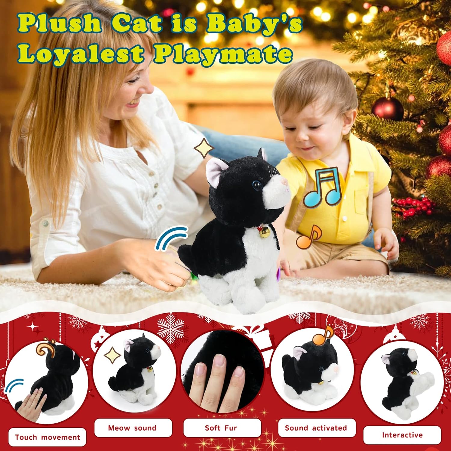 - 【I AM SAFE】I am meek and well-behaved robot kitten, I don’t hurt people. Because I have soft plush material, skin-friendly and safe, filled with PP cotton, good resilience, and fine workmanship.With a smooth and soft body, I'm sure you will like to hug me, but please don't ride me. (As I am small with size 26*28.5cm)