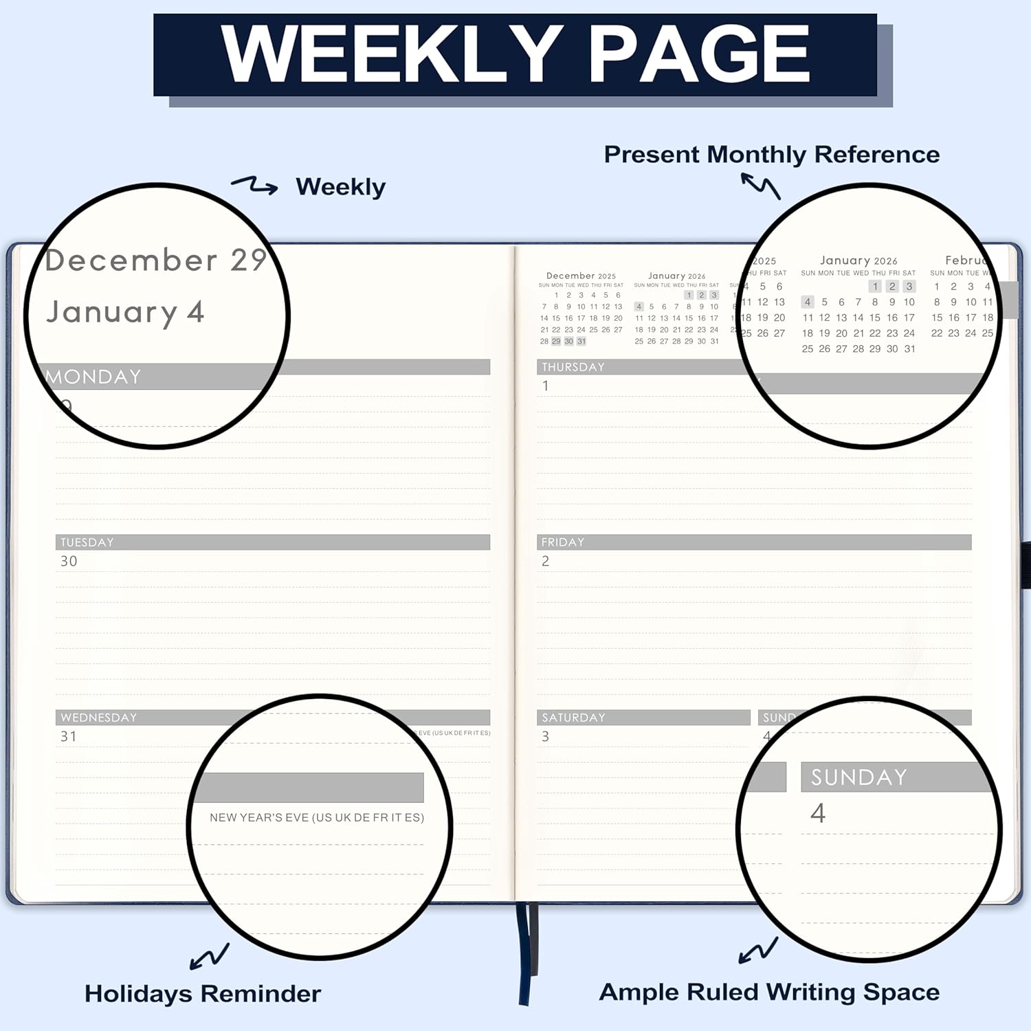 - 2026 Weekly Management - Each weekly page of this 2026 planner has ample lined writing space for your appointments, activities or events, etc. You can make a to-do list and tick off when you're inner pockets can store your scattered items. Also, portable elastic closure keeps your planner closed tightly and easy to carry.