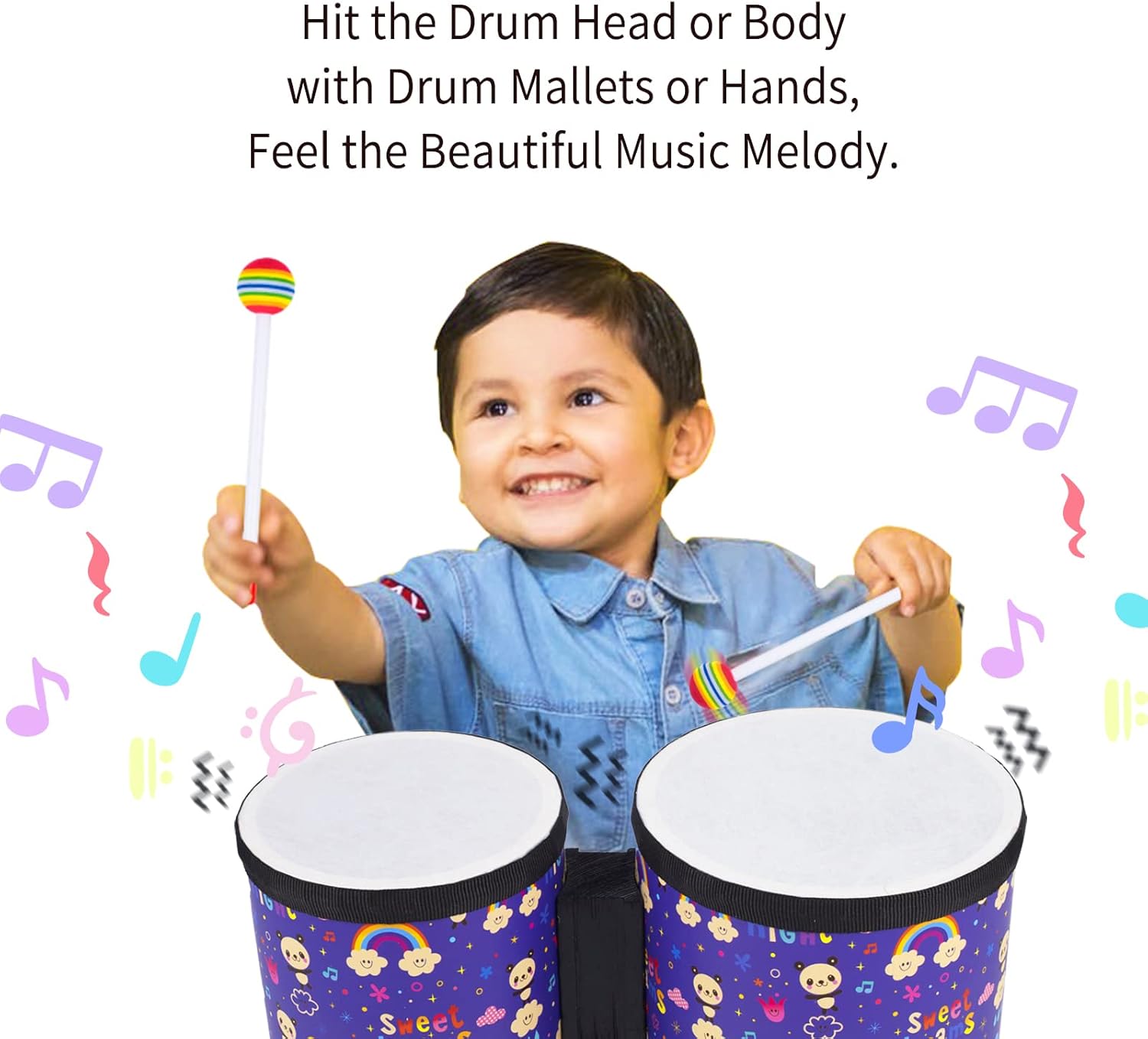 - Strong Attraction: Durable wood drum body wrapped with pretty cute pattern, attractive drum for kids. Ideal for classroom drum circles