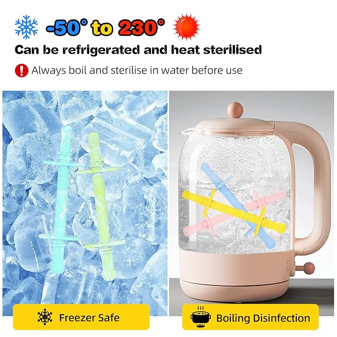 - Safe: Made of high-quality 100% food-grade silicone, it is completely safe for children. Choking Hazard Small Parts! The teether tube should be used under adult's supervision