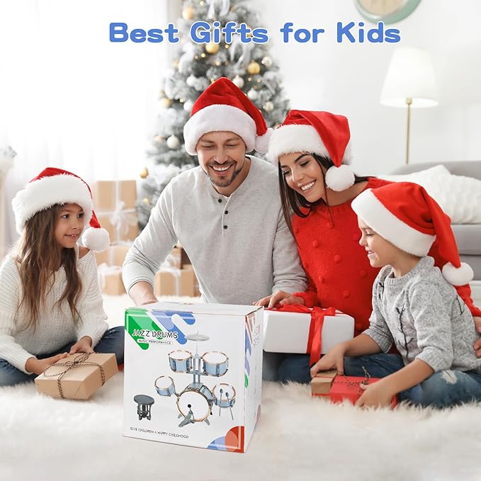 - STABLE STRUCTURE & HIGH QUALITY: The sturdy construction of the stool and drum set allows children to sit safely and play the drums happily. The jazz drum kit is made of environmentally friendly plastic material with fine details, light weight but sturdy and reliable. The high-quality design of this beginner drum set produces a clean and loud sound that allows children to play beautiful music, suitable for developing their musical abilities.