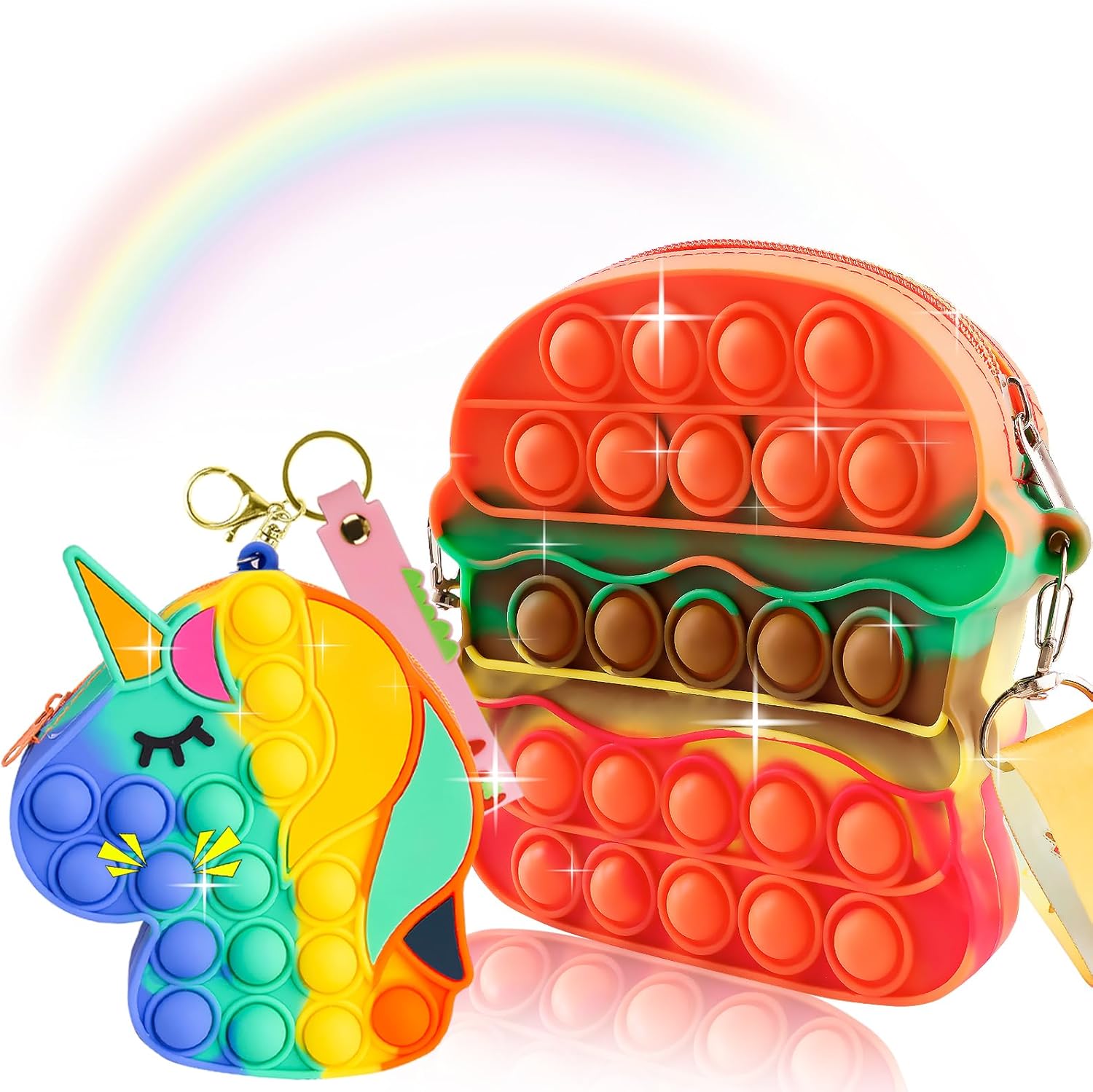 Aucma 2 Pack Pop Purse for Girls Toys Wallet Crossbody Handbag Bag Kid Birthday Valentines Gift 2022 Stocking Stuffers Christmas Xmas Stuff
