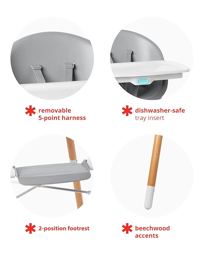 - 4 ways to use: High Chair, Dining Booster, Tableside Booster, Big Kid Chair Smooth, wipe-clean surfaces
