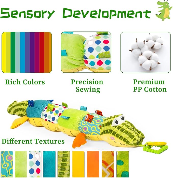 - 【4-in-1 Baby Musical Toy】Crocodile & caterpillar toy is a versatile playtime companion that can be used as a musical toy, plush toy, rattle toy, and crinkle toy. The caterpillar toy jingles, crinkles, and plays music for your baby's enjoyment. Recommended for baby toys 0-6 months,baby toys 6 to 12 months.