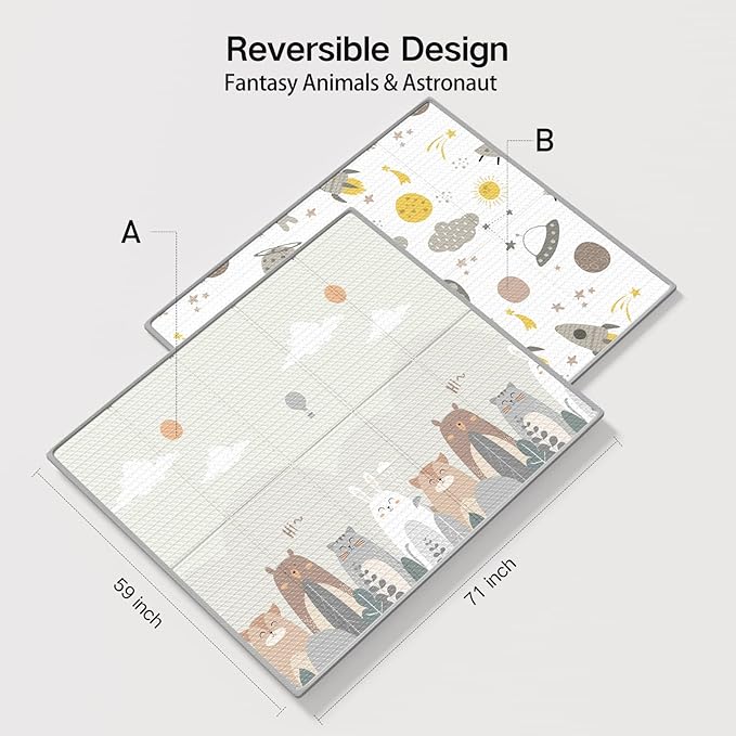 - 【Reversible Sides Design】Our baby floor mat is reversible and has different patterns on each side. Animals prints will help develop kids' cognitive ability. Anti-slip texture to prevent the baby from slipping easily when learning to walk.