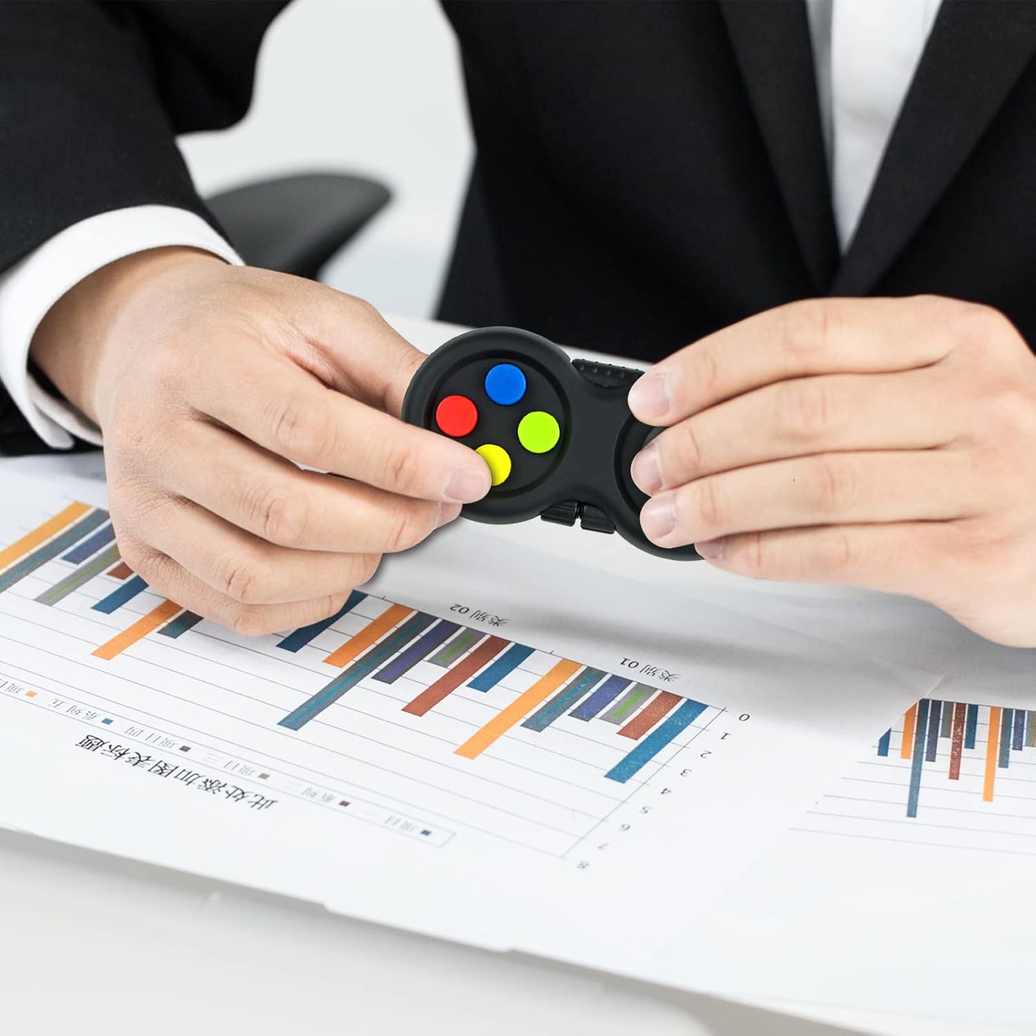 • Nostalgic Toy Design - Inspired by classical video game controllers, the Fidget Toy boasts a colorful, ergonomic design reminiscent of 8-bit gaming's golden age. Enjoy a touch of nostalgia while satisfying your fidgeting urges.