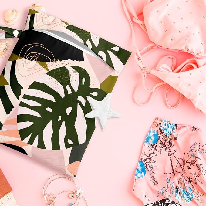 Wet Dry Bag for Swimsuit, Travel, Beach, Pool, Stroller, Diapers, Dirty Yoga Gym Clothes, Makeup Bag, Waterproof Tropical Palm Leaves Decor Jungle Palm Leaf Favors