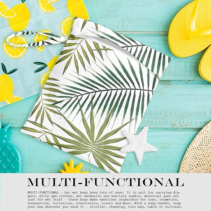 Wet Bag, Wet Dry Bag, Wet Bag for Swimsuit, Travel, Beach, Pool, Diapers, Dirty Yoga Gym Clothes, Makeup Bag, Waterproof Tropical Palm Leaves Decor Jungle Palm Leaf Favors