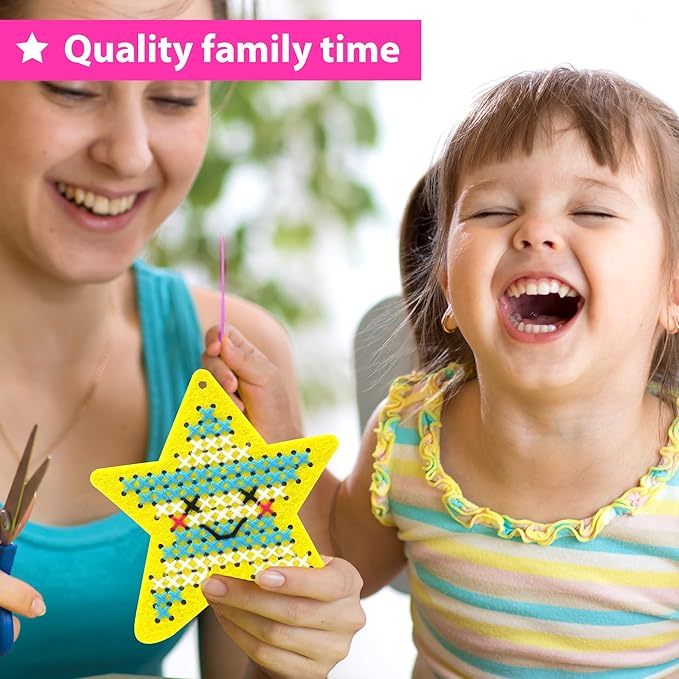 - 🌈 Great For 5+ Years Old Kids 🌈: Great gift for 5+ years old kids who is starting to learn cross stitching technique the first time! Families and friends can also share the fun and complete the kids arts crafts together. Learning cross-stitching, needlepoint, embroidery, crafting skills and create your cute and fun arts and crafts for girls