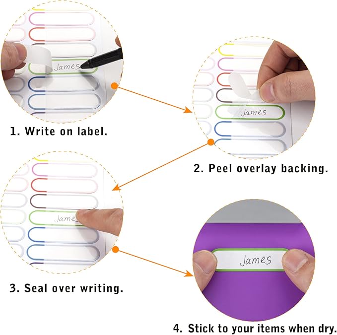 - Name Labels for Kids and Adults----BPA free, waterproof, damp-proof, dishwasher, microwave and freezer safe. It provides an easy way to identify personal belongings.