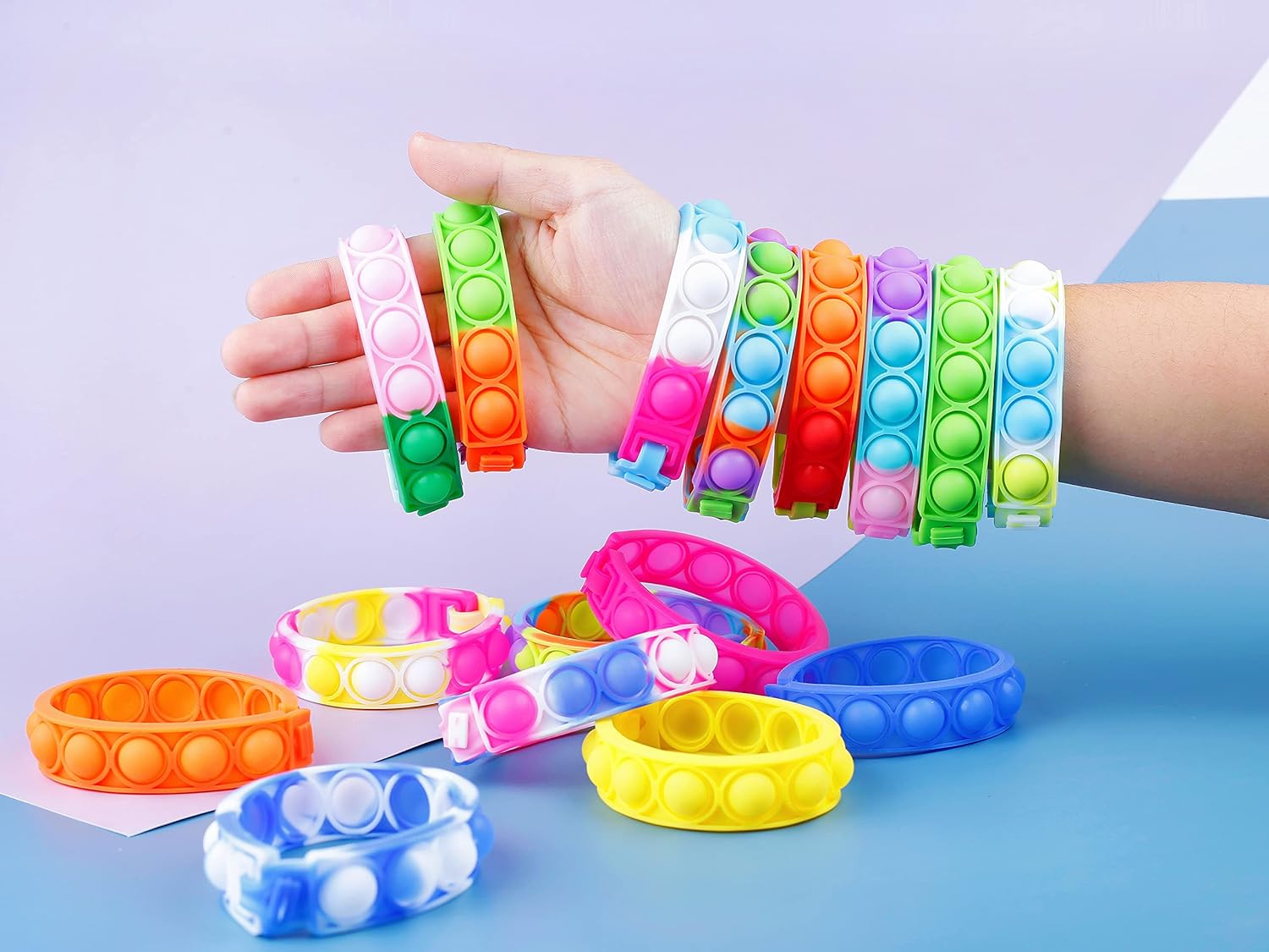 - 【Premium Quality Material】Our push pop bubble wristband made of high-quality silicone material, with a smooth surface, soft and elastic wristband, friendly to skin,you can wear the wristband fidget toys at any time you want