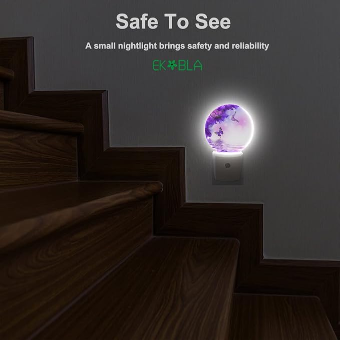 EKOBLA Flower Butterfly Night Light - Purple LED Wall Plug-in Nightlights with Auto Sensor, Dusk to Dawn Lighting for Bedroom & Nursery (0.5W Sleep-Friendly Glow)
