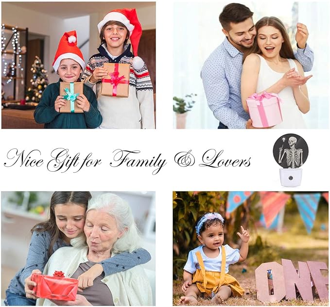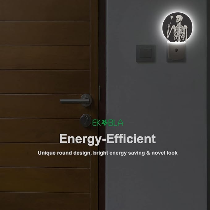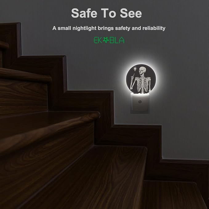 EKOBLA Funny Skull Night Light Human Skeleton Posing Rock Music Pose Black White Night Lights Plug into Wall Auto on/Off Led Lamp for Boys Girls Men Women Halloween Holiday Gifts