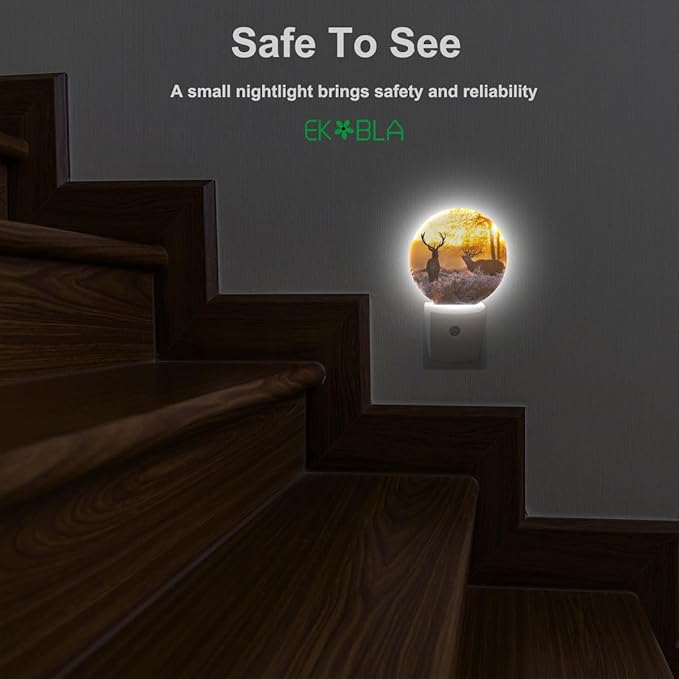 EKOBLA Deer Night Lights Plug into Wall Deer Elk Animals River Creek Autumn Woods Night Light with Dusk to Dawn Sensor LED Lamp for Men Women Boys Girls