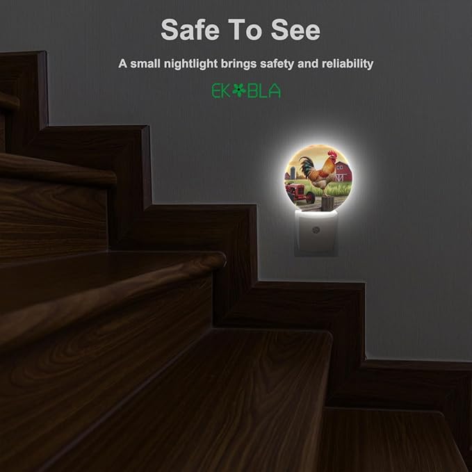 EKOBLA Rooster Night Lights Plug into Wall Rustic Cock Standing on The Fence Farm Animal Led Night Light for Boys Girls Room, Dusk to Dawn Sensor Nightlight for Stairway Hallway Kitchen