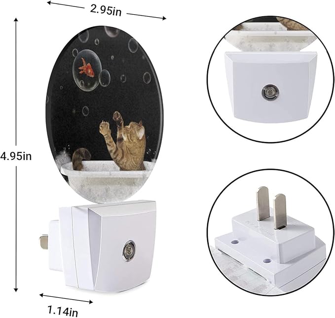EKOBLA Funny Cat and Fish Night Light Black Cat Play Gold Fish Bubbles in Bathtub Night Lights Plug into Wall Home Decor Cute Nightlight for Men Women