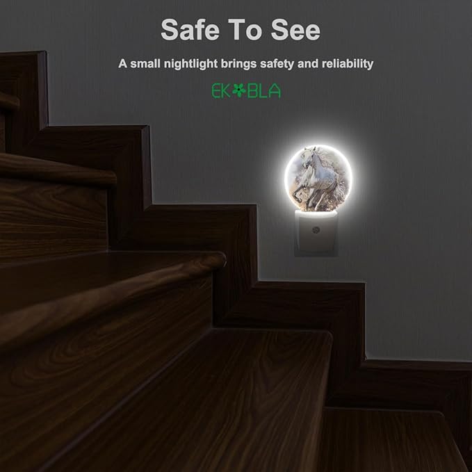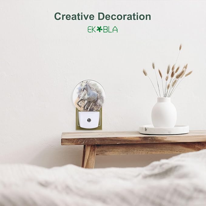 EKOBLA Running Horse LED Night Light Horse Dramatic Sunset Sky Dusk to Dawn Plug-in Nightlights Auto Sensor for Home Indoor Bathroom Hallway Kitchen