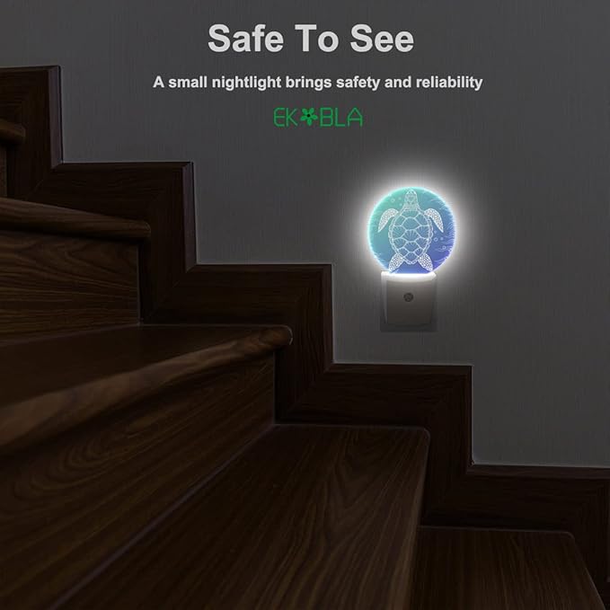 EKOBLA Blue Sea Turtle Night Light Summer Turtle Underwater Vintage Night Lights Plug into Wall Ocean Themed Led Lamp Home Decor for Living Room Bedroom, 0.5W Nightlight