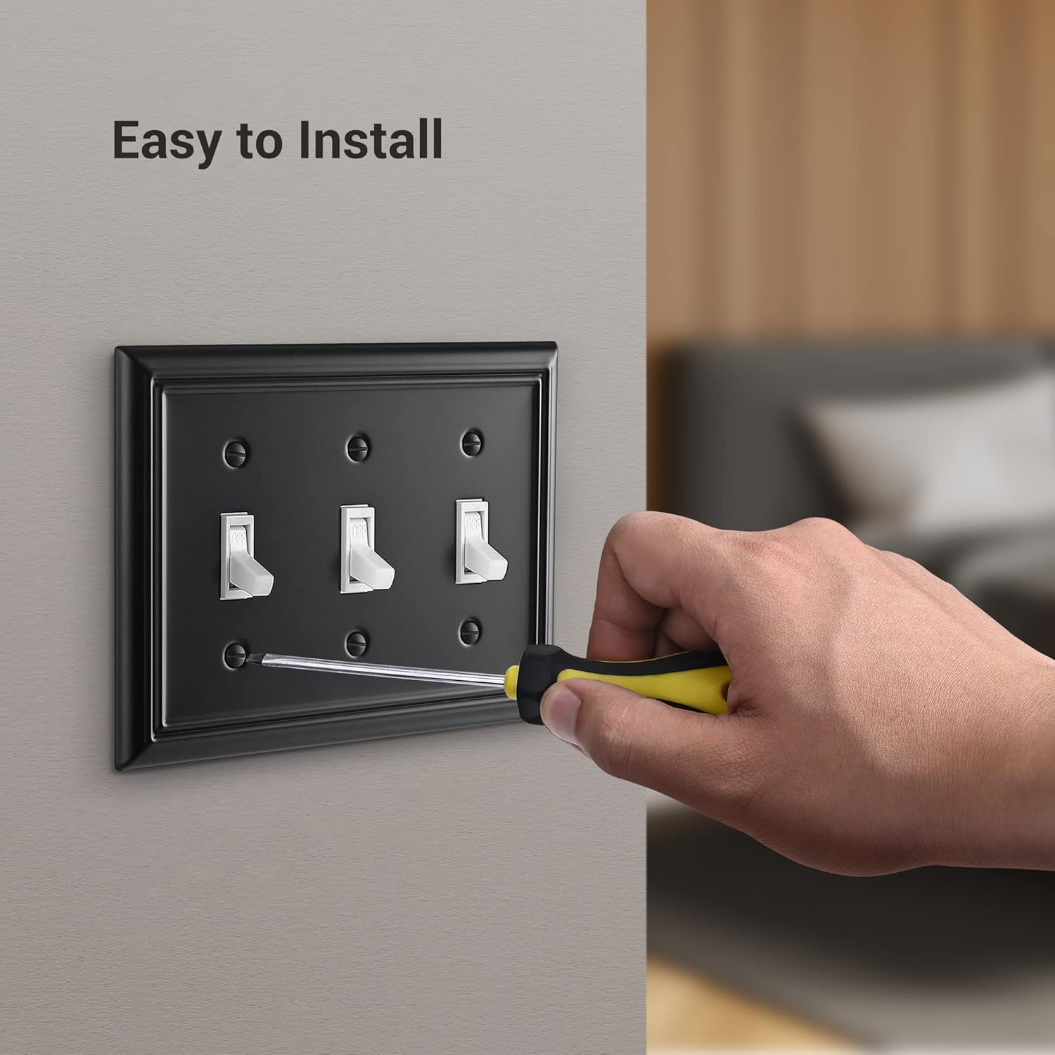 DEWENWILS Triple Toggle Wallplates, Black Light Switch Covers, Heavy Duty Metal Material, Pack of 2